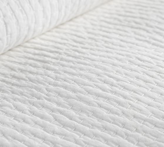 A sweet raffia nightstand with a sculptural white lamp (both from Serena and Lily) will further add to the coastal vibe.